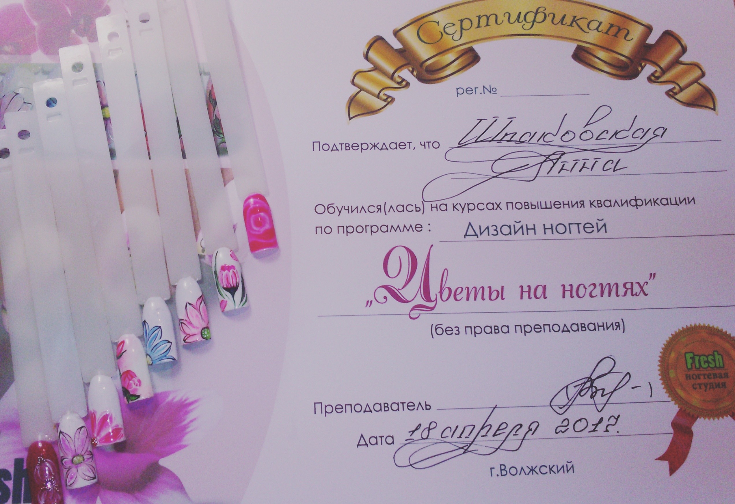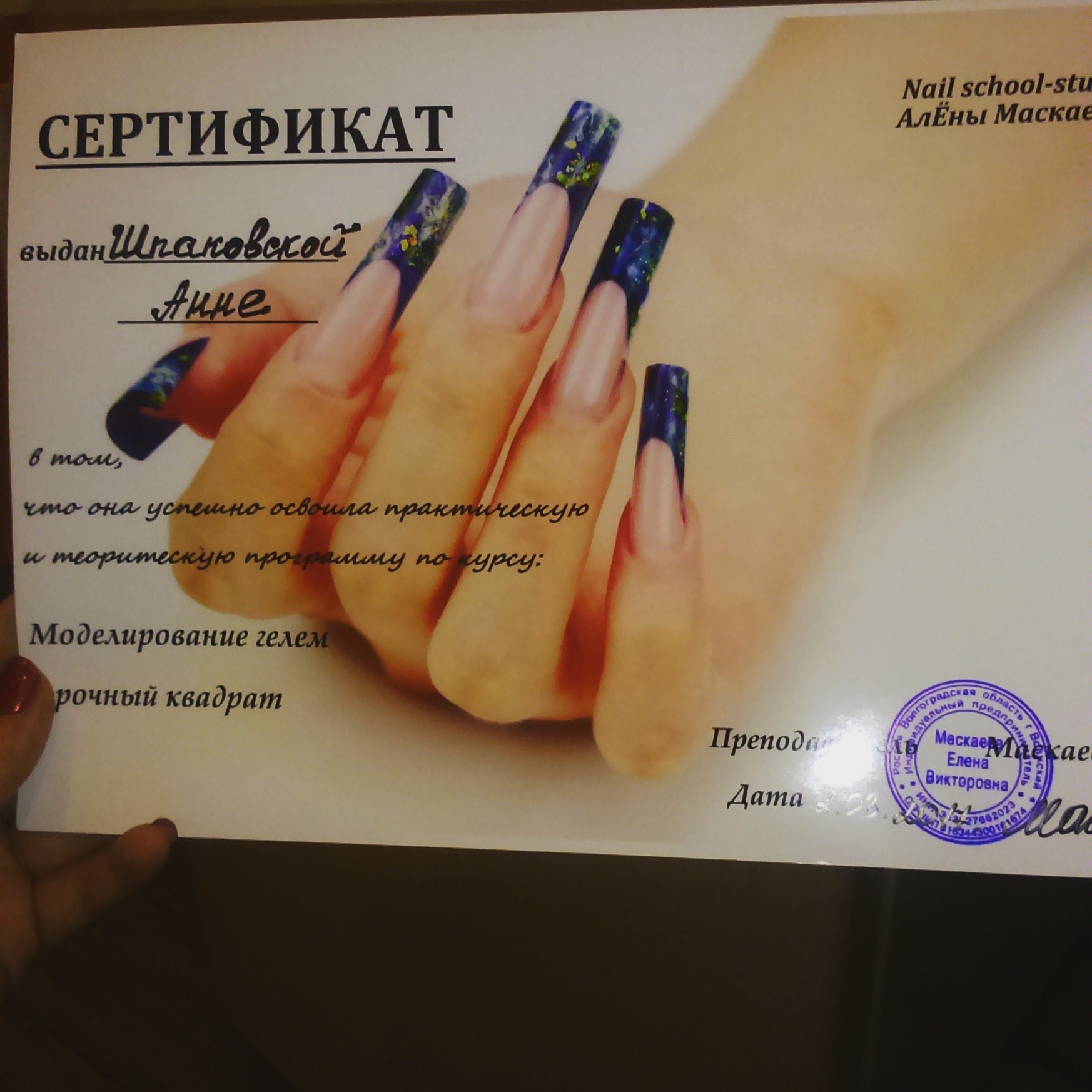 2017г.- повышение по арочному моделированию ногтей гелем.